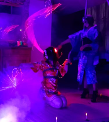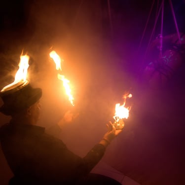 Ce show d'une durée de 30-35 minutes peut être joué en plein air. Il mêle à la fois performance théâtrale, danse aérienne encordée et effets pyrotechniques (feu, fumée, étincelles froides...) . La danse aérienne encordée peut être remplacée par du cerceau aérien et la phase de dénudage supprimée, pour que ce show soit approprié à tout public.