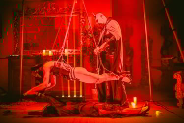 Dans ce spectacle la séduction est figurée par une danse aérienne, la passion par un encordement traditionnel (shibari) au sol, et l'obsession puis la jalousie par du shibari en suspension.
