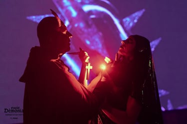 Ce spectacle s'ouvre sur la processions religieuse d' un prètre et d'une nonne. Après une courte cérémonie, l'ecclésiaste s'avère être le diable déguisé. Il envoûte la soeur et la soumet à la luxure. S'ensuit une séance d'impact avec des martinets, puis un encordement et mise en suspension. Le diable utilise ensuite un cierge pour verser de la cire sur la nonne qui se tord de plaisir. Lorsque la jouissance est à son paroxysme, le diable bascule la soeur en position de crucifiction inversée. Il la ramène enfin lentement au sol.
